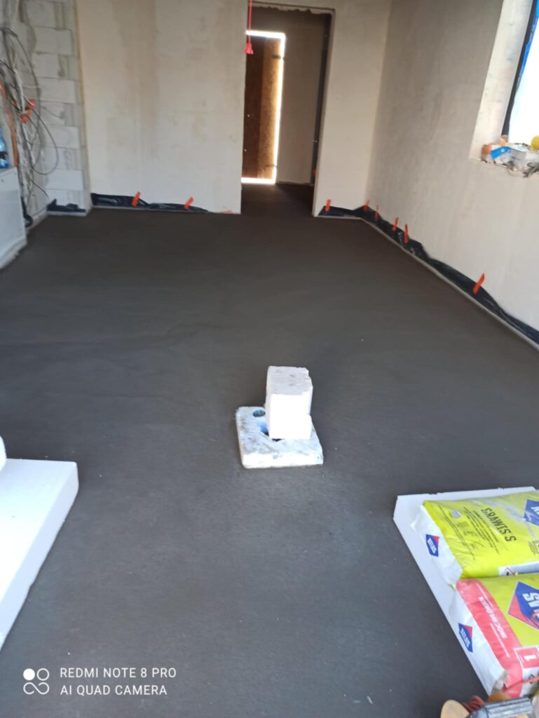 posadzka zreazlizowana w nowobudowanym domku jednorodzinnym, pod posadzką ogrzewanie podłogowe