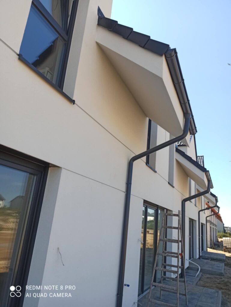 elewacje wykonane ze styropianu, podbitka - konstrukcja z płyty OSB, styropian, tynk