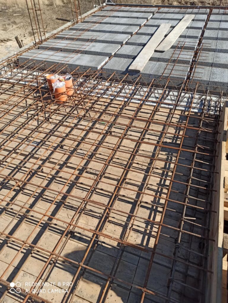 wykonanie konstrukcji stropu, częściowo strop Terriva, częściowo strop żelbetowy