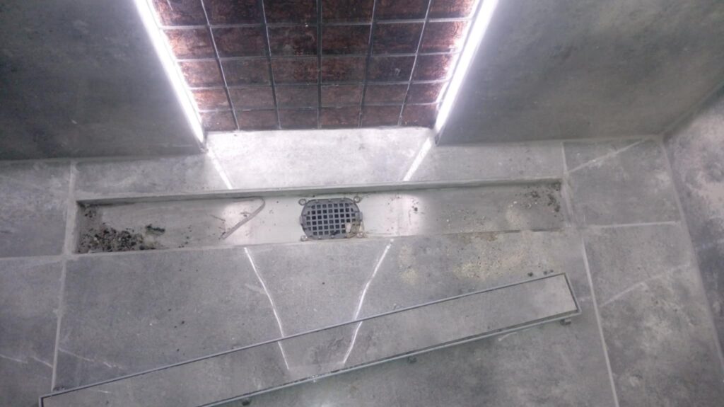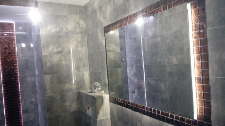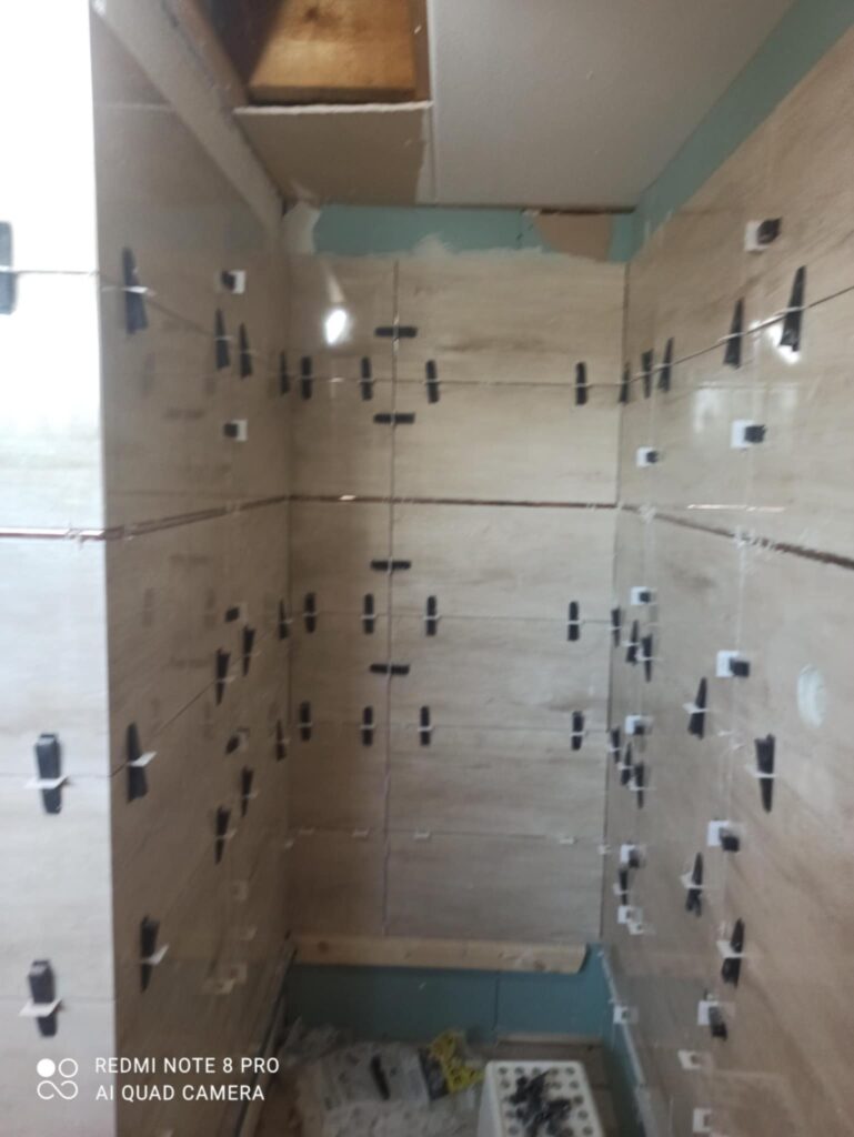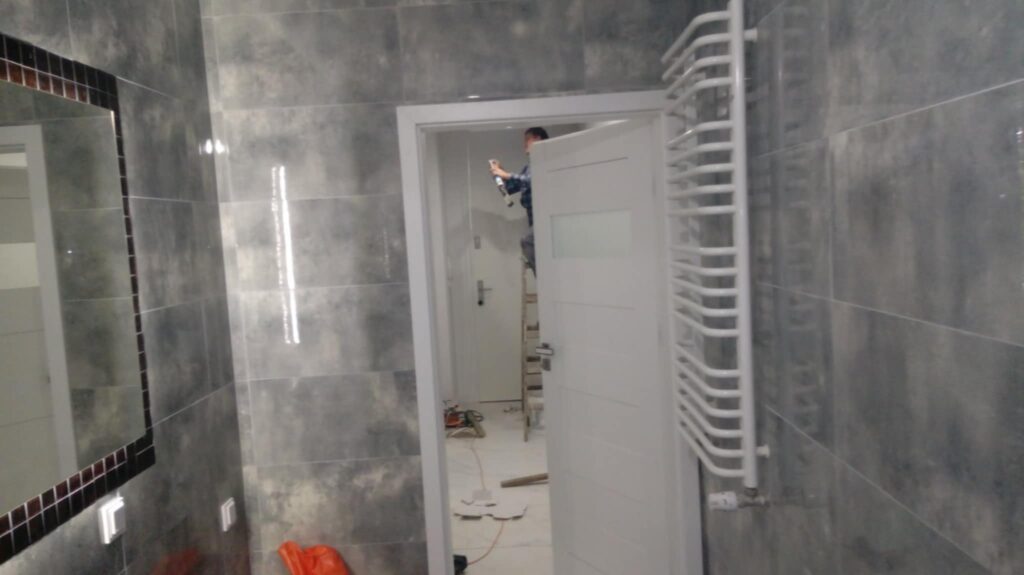 łazienka w domku jednorodzinnym, remont obejmował nową izolację przeciwwodną, instalacje wodne i kanalizacyjne